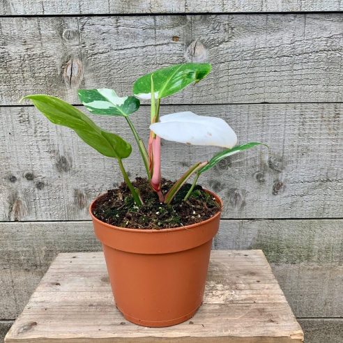 This rare and much sought after Aroid is native to the tropical rain forests of Columbia. This plant exists sporadic cream and pure white variegation on glossy, arrow shaped leaves and has pink edges. This is a collectors plant that we are excited to have at the Nursery. Likes Bright indirect light. When watering, allow the top two inches of soil to dry out before watering again. Reduce watering in winter. Min temp 15C.