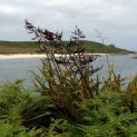 Striking evergreen, forming clumps of sword-shaped leaves. Bronzy-red panicles of flower in summer. Any fertile soil in sun or part shade. Good coastal plant. Height 3m