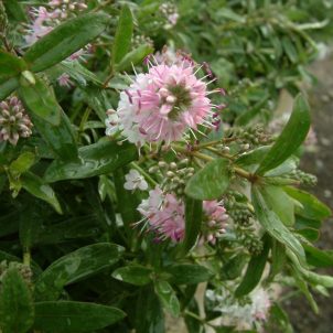 Small evergreen shrub. Beautiful silver variegated leaves. In spring the new growth is bright red. White flowers borne in drooping panicles in spring. Acid soil in sun or shade. Height 1-1½m.