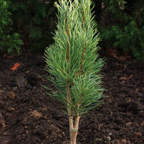 Narrowly columnar form of Scots Pine with grey-green needles and orange-red bark. Tough and hardy. Well drained soil; full sun. 10 year height & spread: 2½m x 40cm.
