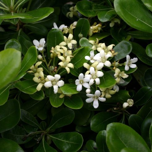 Small, low growing evergreen shrub. Creamy-white scented flowers in summer. This plant is happiest in a well drained alkaline soil in full sun. Height and spread 1m.