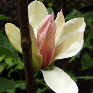Medium evergreen shrub. Pink buds open to creamy white flowers with some speckling in May. Moist acid soil in sheltered, shaded position. Height and width : 1.5 m