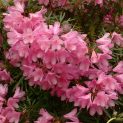 Very compact Hardy Hybrid. New in 1992. Evergreen shrub of dense habit with interesting, dark green leaves. Red buds open to pink-mauve flowers in April/May. Best in moisture retaining acid soil in partial shade. Height 1-1.5m.