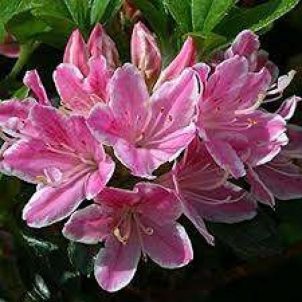 Evergreen shrub. White flowers flushed lavender pink fading to cream. May. Buff indumentum below leaves. Very free flowering. Most acid soil in sun or part shade. Height 1m.