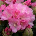 Evergreen shrub. White flowers flushed lavender pink fading to cream. May. Buff indumentum below leaves. Very free flowering. Most acid soil in sun or part shade. Height 1m.