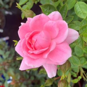Hybrid Tea. Large very pale pink flowers. Strongly scented. Healthy shiny foliage. Height 90cm