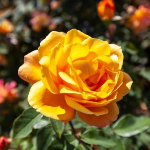 Rugosa. 1922 Rich amber-yellow flowers with a delicious fragrance. Repeat flowering. Good disease resistance.Tolerates poor soils and shade. Height 1.8m.
