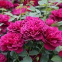 English Rose. Compact. Beautifully deep crimson flowers. Repeat flowering with fruity scent. Very healthy growth. Full sun, good soil. Height 90-120cm.