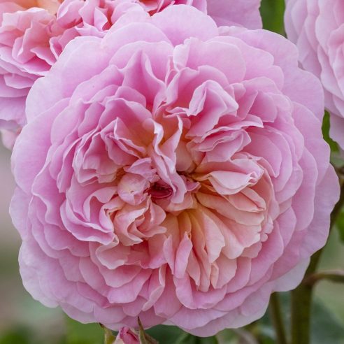 New English. Large number of double light apricot-pink flowers. Strong fruity Scent. Very weather-resistant and healthy growth. Height 1.2cm.