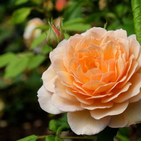 New English. Beautiful double flowers of shades of apricot. Lovely scent, repeat flowering. Very weather-resistant and healthy growth. Height 90-120cm.