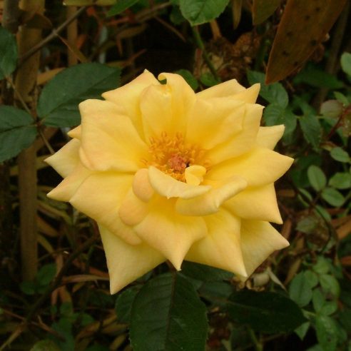 Patio Climber. Soft yellow flowers with pink shades are produced continually through the summer. Slightly fragrant. Good disease resistance. Excellent in a large container Height 2m.