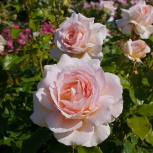 Hybrid Tea. Lovely large pink double flowers on a strong growing bush. Very fragrant. Long flowering season. Likes full sun and good soil. Height 75- 100cm.