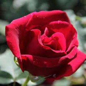 Hybrid Tea. A neat compact rose ideal for the smaller garden with ruby-red fragrant flowers. Height 60cm.