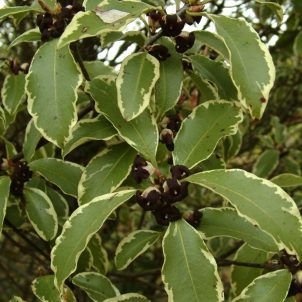 Vigorous evergreen. Scented white flowers in spring. Large clusters of red fruits in winter. A female variety so male needed for pollination. Best in an acid or neutral soil in sun or shade. Good coastal plant. Height and spread 1½m.