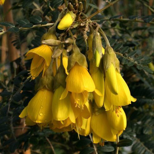 Small evergreen tree/large shrub. Bushy upright but arching habit.Large tubular pea-shaped yellow flowers in clusters in March and April. Well drained fertile soil in full sun. Height and spread 2-3m.