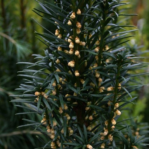 Irish Yew. Selected form of one of the best known upright conifers. Dense column of dark green. Well drained soil, sun or part shade. 10 year height 2m. Ultimate height 9m. CAUTION: TOXIC IF EATEN. Please note Taxus do not like the damp.