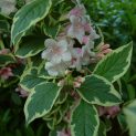 Deciduous. One of the best variegated foliage shrubs. Pink tubular flowers in May and June. Any soil in sun or shade. Prune out old flowering wood to keep tidy. Height 2m.