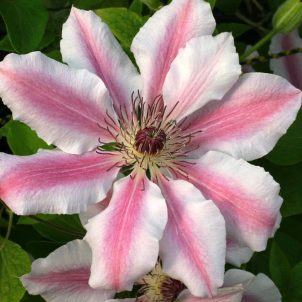 Long racemes of fragrant pastel-pink flowers. Soft ferny foliage Tie in to cover walls/trellis. Once established cut laterals to 15cm (6') in July and August. Shorten to two buds in December or January. Fertile soil in full sun. 6m-10m.