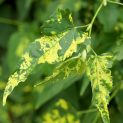 Tender evergreen shrub with distinctive mottled foliage. Bell-shaped red and yellow flowers in summer and autumn. Well drained soil. Best grown against a warm wall in full sun. Height 1½m.
