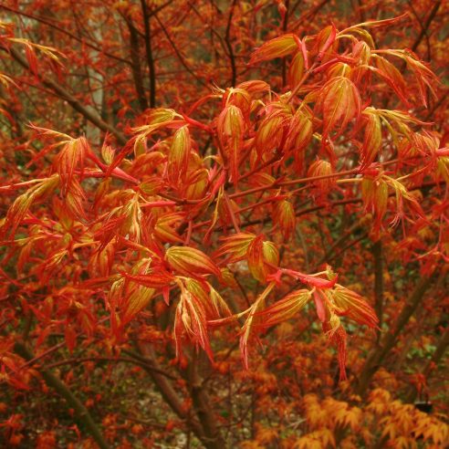 Small growing dense shrub. Foliage pale orange in spring. Turns rich green in summer then yellow and orange in autumn. Good soil in light shade. Sheltered position. 2-2.5m.