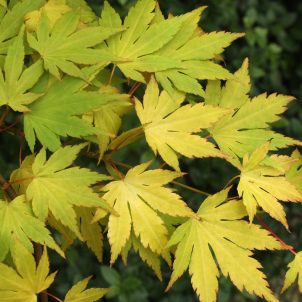 Norway Maple. Striking deciduous tree with green leaves broadly margined with creamy-white. Autumn colour is yellow. Remove any shoots which revert to all green. Any soil in sun or shade. Height 12-16m.(40-50ft)