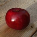 Fruit Greenish Yellow, flushed dark maroon, striped dark red. Pale cream Flesh, tinged pink. Dessert Apple with a hint of Strawberry/Raspberry. Pollination Group 2.