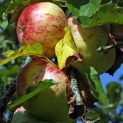 Cooker/cider. Huge pale green fruit with red flush and stripes. Acid flavour makes this an excellent cooker. Pollination Group 4