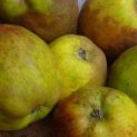 Dessert. 1800 Medium green & red knobbly fruit that is richly aromatic, especially when cut, with a rich sweet flavour. Good grower. Pretty blossom. Pick late October. Use January/May. Pollination group 4.