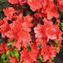 Compact evergreen shrub bearing vivid orange-red flowers in April and May. Best in moist acid soil in sun or shade. Height 1m.