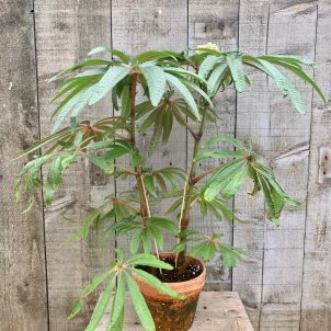 A magnificent specimen for the conservatory or house. Keep dry in winter but water and feed through the summer months. Best in sun. Pot on when potbound.