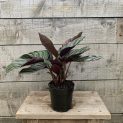 This striking houseplant has olive green leaves with a fish patterned of white sometimes pink with maroon undersides. Prefers a shady spot in the home with some indirect light. Do not allow to dry out but the plant must never sit in water. Allow the top of the compost to dry out before watering again. Likes humidity.