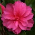 Fast growing, open and spreading evergreen shrub. Formal double flowers, 7.5cm across, strong brilliant pink. Winter flowering. Needs acid soil and best in sun or part shade. Height 3m.