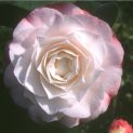 Evergreen shrub of upright habit. Distinctive pale pink flowers edged in deeper pink. Formal double with 60 petals. Best in a moist acid soil in a sheltered, semi-shaded position. Height 3m.