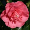 Large evergreen shrub bearing large anemone flowers of deep peach-pink in spring. Acid soil only in shady sheltered position. Height 3m.