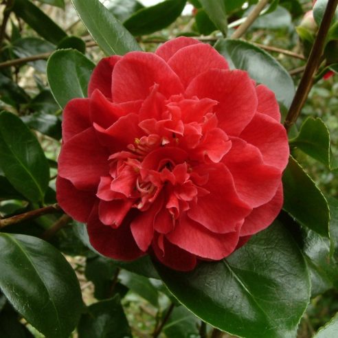 Large evergreen shrub. Small bright red anemone form flowers. Best in acid soil in shade or semi-shade coastal plant. Height 3m+.