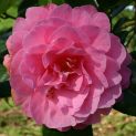 Large evergreen shrub. Dusky-pink formal double flowers/peony form. Nov-May. Best in acid soil in shade or semi-shade. Good coastal plant. Height 3m.+
