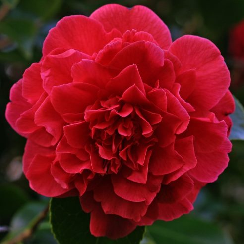 Evergreen shrub. Large red peony form flowers. Slightly fragrant. Feb-May. Best in acid soil in shade or semi-shade. Good coastal plant. Height 3m.