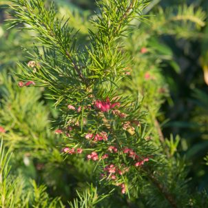 Large, evergreen shrub. Bright red formal double flowers. New leaves are deep red maturing to dark green foliage. Best in acid soil in shade or semi-shade. Good coastal plant. Height 3m.