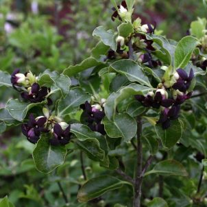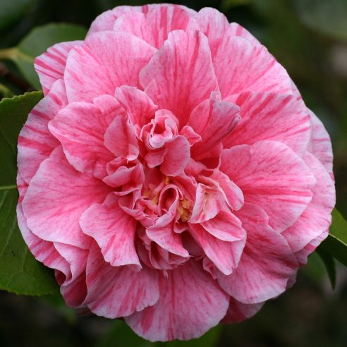 Evergreen shrub. Large rose peony striped flowers with white striping. Best in fertile, acid soil in partial shade. Good coastal plant. Height 3m.