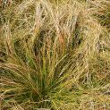 Loosely tufted non-invasive neat clumps of narrow leaves with an orange sheen.Pale brown flower plumes. Any soil in full sun. Height 45cm (12-18ins)