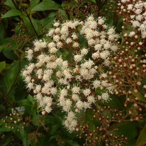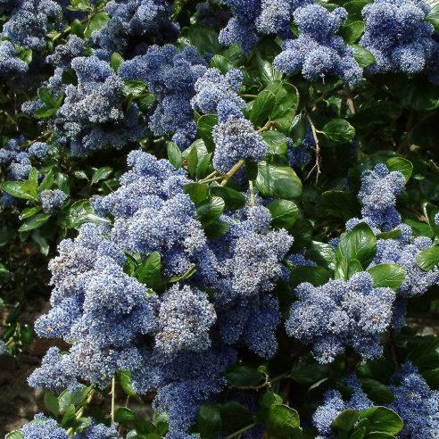 Fast growing evergreen tree. Deep blue flowers in summer. Best in a sheltered position in sun or semi-shade. Good grown against a wall. Height 3m.