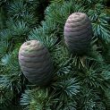 Blue Atlas Cedar. Pyramidal at first then lower branches hanging down and spreading widely. Superb specimen tree. 10 year height: 3-4m. Ultimate height: 20-25m.