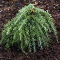 Silver blue foliage; low weeping habit. An elegant new variety. Well drained soil, full sun. 10 year height & spread: 30cm x 1.2m.