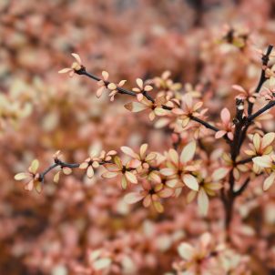 Deciduous large shrub or bushy tree grown mostly for its lime green-orange foliage. Small pink flowers in March and April before leaves emerge. Any well drained soil in full sun for best leaf colour. Height 3-4m.