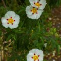 Small evergreen shrub. White flowers with a crimson blotch in summer. Best on well drained soils in full sun. Good coastal plants. Height 60-90 cm