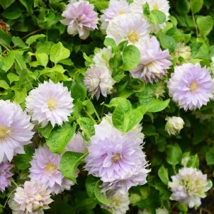 Deep purple semi-double flowers. May/June + Aug. Aspect: South or West. Prune to strong buds on last year's wood. Best in rich fertile soil. Shade roots from sun. Height 2½m.