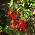 Lobster's Claw. Brilliant red, claw-like flowers in pendant clusters. Semi-evergreen ferny foliage. In milder areas best on a warm south or west wall. In colder areas grow as a conservatory plant. Height 2m.