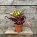 A striking houseplant with red, green and yellow leaves. This variety has long glossy point y leaves. Place in bright, indirect light for the most colourful leaves. Keep compost moist and reduce watering in winter. Feed in summer with weak fertiliser. 1.2m Height.