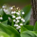 Lily of the Valley. Sweetly scented white flower sprays in April. Excellent groundcover. Any soil in sun or part shade. Height 15-20cm.