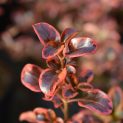 Evergreen shrub. Half hardy. Glossy green and dark green leaves with red margins, the entire leaf turning red in winter. Suitable for mild or coastal gardens or cold conservatory. Moist well drained soil in full or part sun. Height and spread 1m.